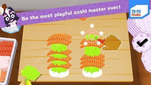 1、趣味十足的卡通画风,搭配轻松活泼的背景音乐,让你尽情享受寿司制作的乐趣;