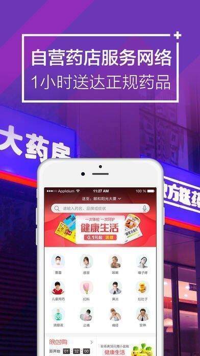 2. 自营药店:自营网络,1 小时送达正规药品。