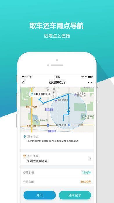 3、全自助:通过手机一键取还车,还能控制车门锁。