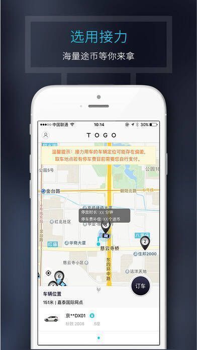 TOGO是一个基于共享模式提供自由共享车的智能平台,能实现24小时随驾随还,并且以车为智能平台,延伸更多共享服务,不受任何限定和限制。它不仅重新定义了出行方式,还能帮助人们在自由的社交模式下,灵活地交换时间、个性,甚至思想和人生。通过共享,释放生活的无限可能,让未来提前到来!
