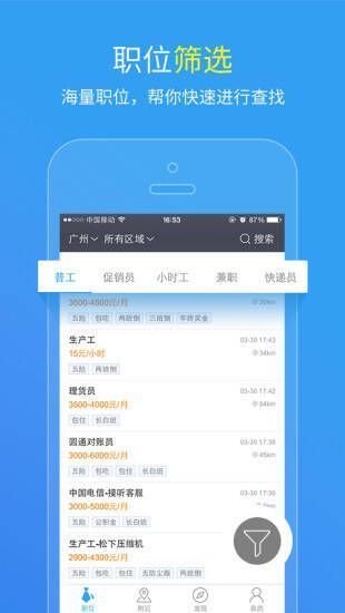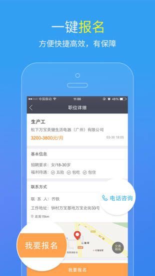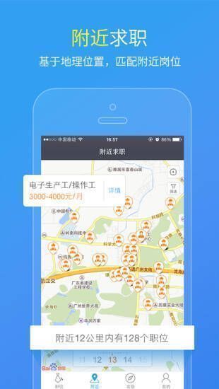 它具备诸多亮点。拥有海量岗位,涵盖生产工、技工、汽修等各类工作;还有众多名企入驻,像伟创力、富士康等。软件特色丰富,“闪一下”多渠道极速传信息;“索要简历”企业主动邀人才;“邀我投递”实现双向精准匹配;“红包小助手”发红包揽人才;“面试体验”分享助你提前了解公司。