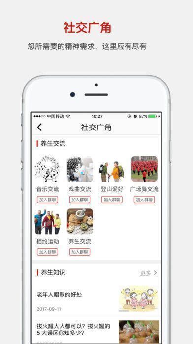 【社交广角】您可以找朋友聊天、约人跳广场舞、在病友群交流养生之道,满足您的精神需求,告别寂寞。