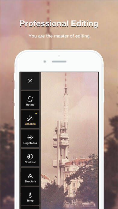 【编辑工具】软件配备了一套大型核心的多个惊人滤镜,分为永恒的风格和主题,能帮助用户完美修饰照片,如电影、冻结、褪色、HDR、黑白、即时、古董、肖像、宝丽来、LOMO、灯光和纹理等。此外,用户还能对照片进行调整。