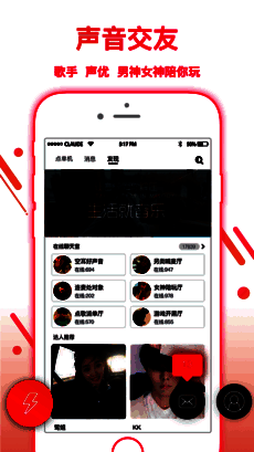 【在线聊天室】有K歌、娱乐、陪聊等多种类型,可寻觅契合的声音;【一对一服务】高品质专属点歌,与达人面对面交流;【专业音效】自带声卡,随时随地唱出高清音质;【声音交友】能和歌手、声优、男神女神交友互动;【聊天互动】支持多人连麦、互动游戏、边聊边唱。