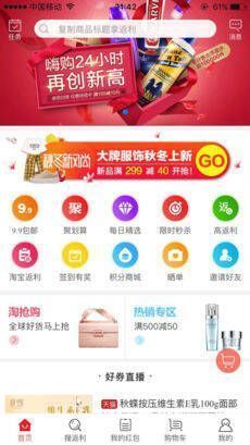 3、返利省钱:从省多淘领取优惠券购物,确认收货后还会获得相应集分宝,更加省钱。