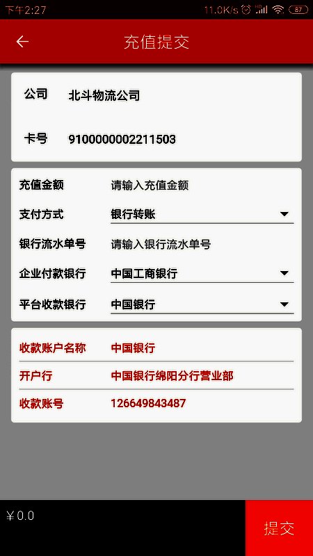 中油北斗APP是专门为物流企业客户打造的办公商务软件,主要协助客户完成加油卡线上充值、电子发票开票等业务。其安卓版是智能物流管理平台,能解决物流管理、车货配对、在线解决方案等一系列问题。为让用户享受更多实惠,系统实现免费运输管理,助力客户实现线上线下链条式闭环管理,通过一体化方案提升管理效率,实现实时车货配对和运费结算,降低物流各环节费用,提高交易透明度,降低客户成本,且充值界面新增多家可绑定银行。
