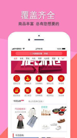今日折购,堪称巨省钱的移动购物平台!在这里,你能轻松购得最新最全的优质好物,还能享受诸多福利。新人专享优惠、爆款秒杀活动,更有海量红包等你来拿。赶快下载,开启省钱购物之旅!