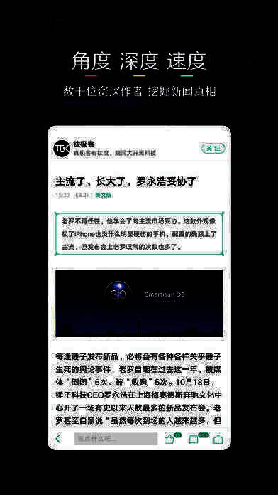 2、聚焦热点头条:拥有专业原创内容团队,还汇聚了众多科技创新与商业领域的专家和意见领袖,打造内容社交。
