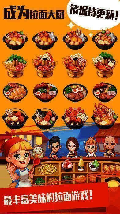 《拉面大厨》是一款拉面店经营游戏。在游戏中,你可以经营多家拉面店,学习传统和创新的拉面菜式,满足顾客的不同需求,赚取丰厚收益,购买更多道具升级厨房,挑战更多关卡,成为精通各种拉面菜式的明星大厨!