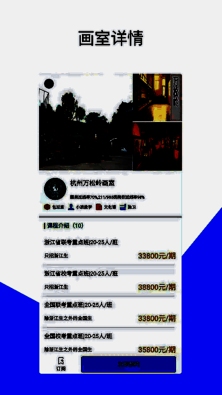 美术舟app是一款音乐培训软件,也是服务众多美术艺考生和全国各类美术培训学校的专业艺考咨询综合服务平台。通过美术舟平台报名的学员,在做决策前,都会收到一份“美术生分析报告”,获得专业的实施建议,同时还会有至少3家画室供其选择。