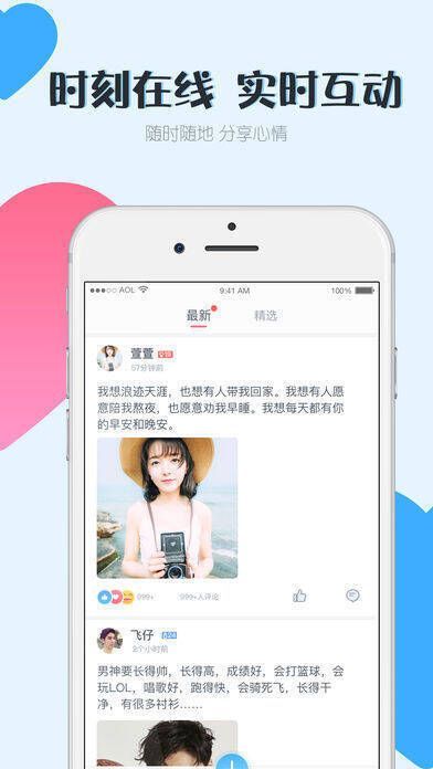 这款软件介绍十分详尽,用户都很真诚,新手也能轻松上手。我希望能收到更多来信,有更多选择。它不仅有“一见钟情”“附近的人”“守护系统”等丰富强大的社交功能,还提供有趣的游戏和玩法,帮用户吸引关注、结识新朋友、拓展社交圈,实现在线用户同步交流,获得精准推荐与匹配,找到理想的伴侣。功能介绍:[一见钟情]动动手指翻照片,一秒寻爱,说不定真爱就会悄然降临;[附近的人]按地理位置找附近的人,方便线下约会;[守护加身]关注在意的人,掌握其动态,让爱升温;[真人认证]人工鉴定确保照片真实,保障交友安全;[排行榜单]展现自我,登上名气榜单受众人膜拜。