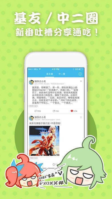 2、中二病:可与同好分享二次元生活点滴。