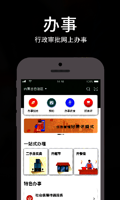 4. 打造本地专属“移动端办事窗口”,通过掌上咨询、申报、预约一体化,助力个人或企业在手机上办理各部门上百项业务。