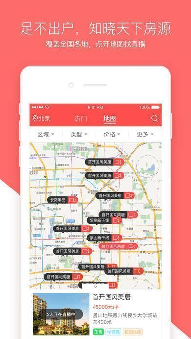 1、开启直播看房新时代;2、带来全新体验,让用户足不出户选好房;3、足不出户知晓各地房源,覆盖全国,可通过地图查找直播;4、专家为用户解答购房难题,分析最新、最权威的房产形势。