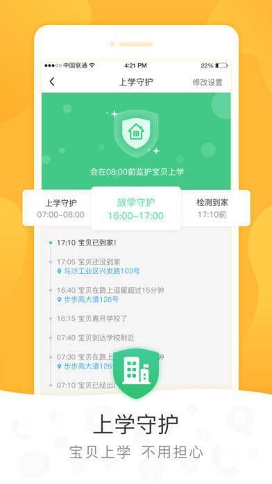 9. 上学守护:利用定位功能全面守护孩子上学、放学过程,告知家长孩子到校、离校等情况。
