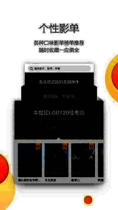 - 片荒必备:超万张各类好片影单,用户可从中找到喜欢的华语经典和冷门佳片。