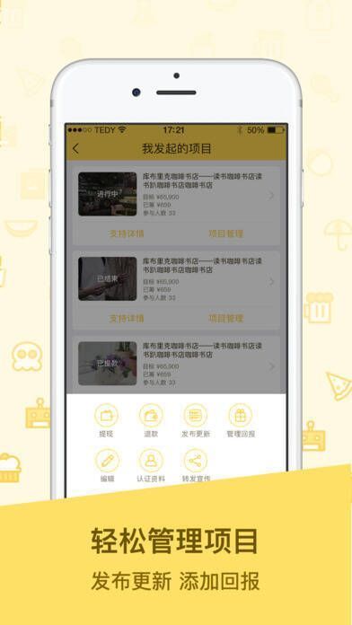4、【轻松管理】:可随时提现、退款,提交实名信息,轻松管理项目,让大家助力实现梦想。