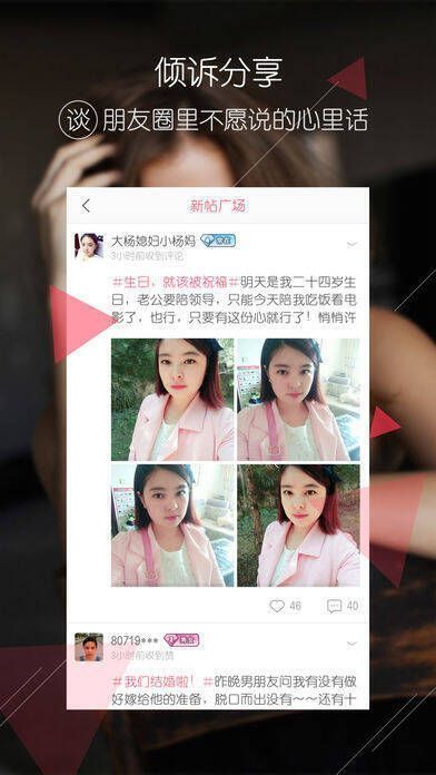 2、姐妹们交流不断,每天都有新话题。美食、斗小三、旅行、爱情、母婴、婆媳等话题任你创造,美荔姐妹聊的交流空间无限。私聊、群聊、语音聊,图文结合,让心意相通的姐妹们没有距离。