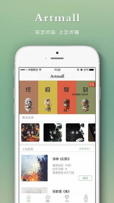 1、Artmall(艺术猫)是国内领先的艺术品在线交易与交流平台。