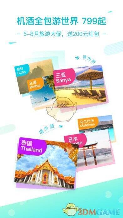 2、机票 + 其它产品套餐:国内外机票与酒店、wifi、签证等旅游打包套餐可一键购买,省时又省心,让旅游更便捷;