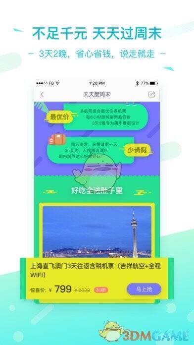 2、淘旅行专门为中国年轻人打造自由行服务,将飞机与酒店进行打包,为你精心挑选自由行路线并亲自体验。航班时间优、酒店选择多,让你告别劳心劳力。