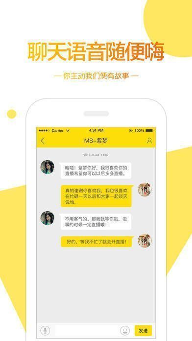 3、文字、语音一起嗨聊:遇到喜欢的美女,除了 1 对 1 视频聊天,还能发起文字和语音聊天。