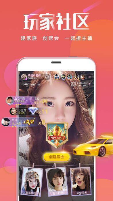 3、玩家社区可建家族、创帮会,一起和主播互动;