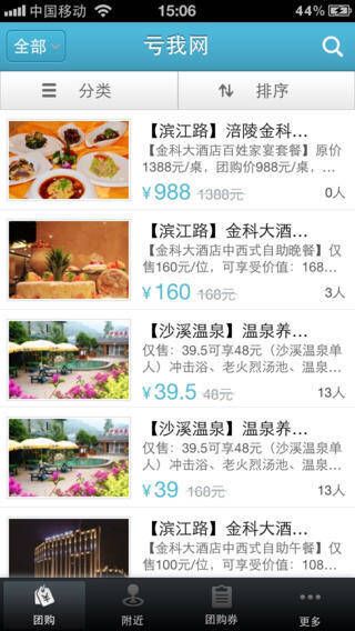 2、团购分类排序:按团购内容分类刷选;