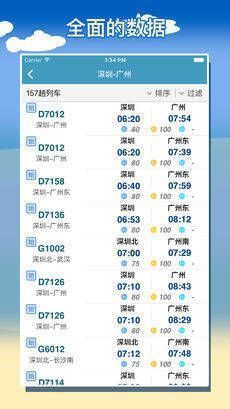 4、智能排序,可依据始发时间、到站时间、票价、里程、耗时、中转等待耗时等参数排序。