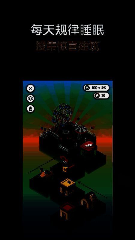 3、每天在起床目标前,摇动手机快速清醒。现在除了担心上班、上课迟到,还有更棒的起床动力——看看昨晚盖出了什么房屋!
