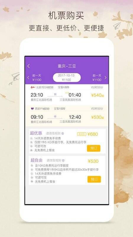 2、新增购买往返程机票功能,你可以快速订购往返机票,省时省力又省钱;