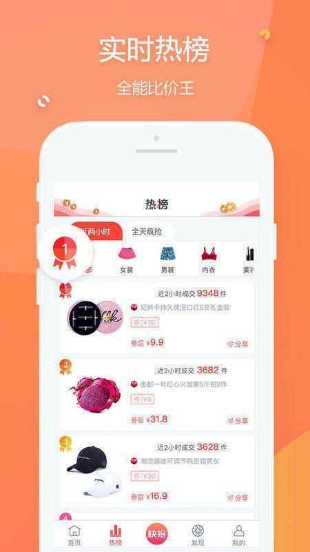 1、好货疯抢:分享单日优惠券商城里最畅销的商品。