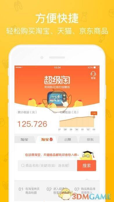《超级淘》是一款出色的专业购物软件。打开它,像天猫、淘宝、京东等主流商城的商品,都能一键轻松购买。每笔消费还能获取高额返利,让购物更划算。它精选全球好货,商品种类丰富、大牌众多,在淘宝消费后还能到这拿返利。