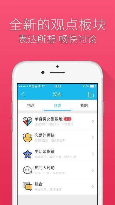 7. 观点功能:参与话题讨论,找到志同道合之人。