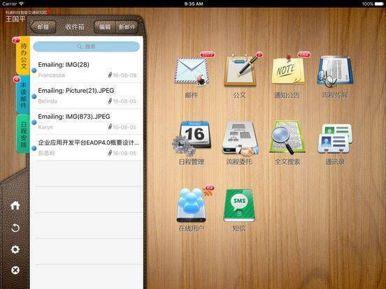 具备电子邮件收发、公文处理、通知公告、流程传阅、流程委托、日程管理、全文检索、通讯录、在线用户、短信等功能。