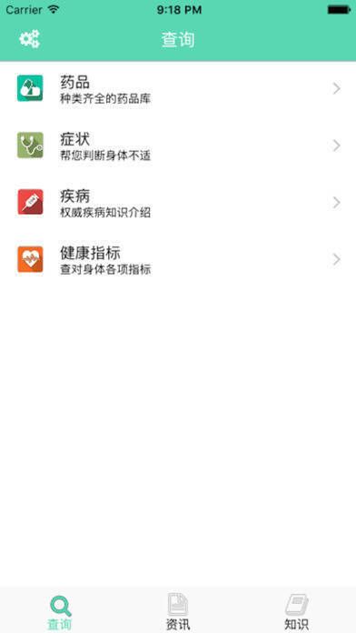 此应用程序可对各类药品和常见疾病进行查询,同时实时提供健康类资讯与知识。