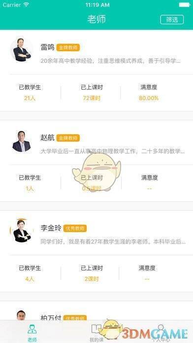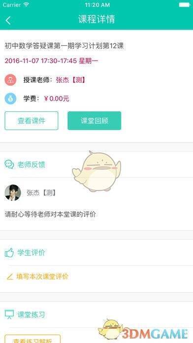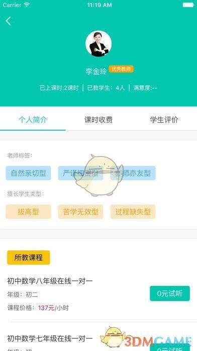1. 可随时查询老师介绍,视频查看授课情况,课时收费清晰透明;2. app内学习计划、教学课件及课程回顾一目了然;3. 手机预约即可在线试听课程,匹配老师一对一直播上课;4. 查看课表、课程详情,记录课堂练习与课后作业批改进度;5. 用户可对老师课程真实评价,讲测分离。