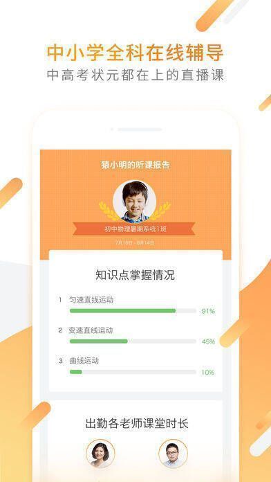 猿辅导是面向小学、初中、高中全科(涵盖语文、数学、英语、物理、化学等)的在线辅导软件,是高效提分的得力工具。不用出门,在家就能挑选北京名师,直播互动课程随选随学,目前已有116万中小学生选择在猿辅导上直播课。