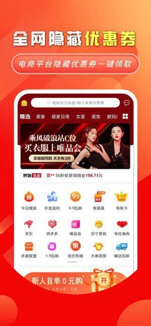 爆款商品不停秒,每日品牌商品优惠券限时疯抢。
