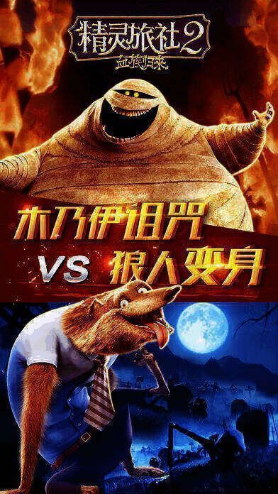 4. 游戏剧情和电影同步,近百个关卡极具挑战性,玩家可以收集吸血鬼、弗兰肯、狼人等所有精灵鬼怪,培养出最佳魔幻阵容。