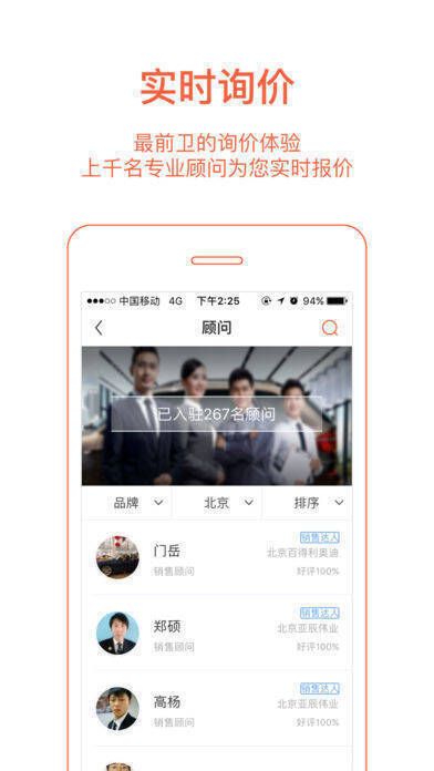 3. 询价:拥有前卫的询价系统,多位在线顾问同时为用户报价,用户可自由挑选顾问,随心看车。