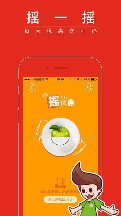5、摇摇优惠:打开客户端,摇一摇手机,惊喜大奖可能就会降临。