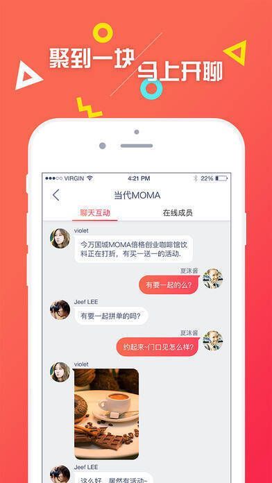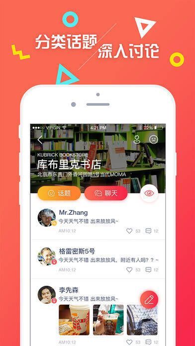 【即时聊天】:和身边的人轻松畅聊,随时可能见面。