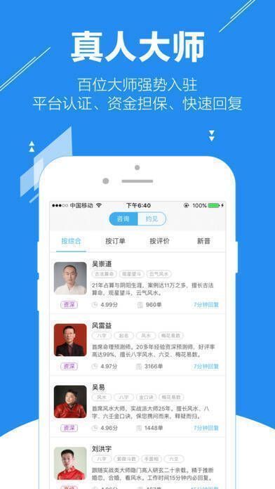 5. 八字算命大师分布在北京、河南、山东、浙江、福建、广东、江西、辽宁、山西等地,每位大师都经过人工审核身份、真实头像和姓名,客户下单后可与大师即时聊天沟通。