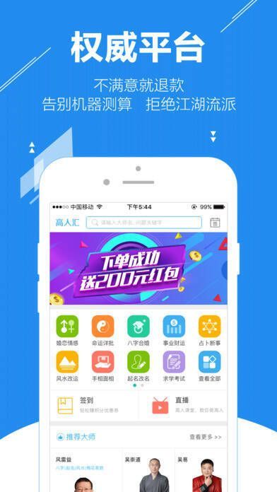 4. 高人汇邀请众多国内知名玄学大师,为大家提供命理运势分析,在人生迷茫时指点迷津,弘扬国学文化。