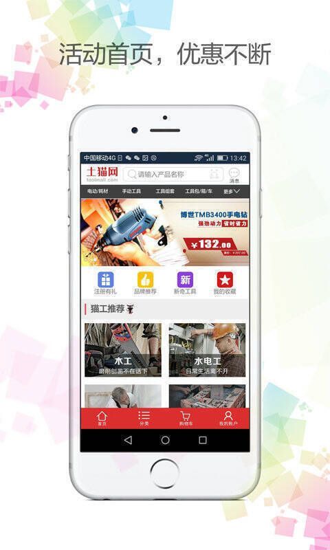 《土猫网》是一款专业的五金工具商城。在这里,无论是手动、电动、汽修,还是气动工具,都能以超低价购入。现在注册即可领取各类优惠券。