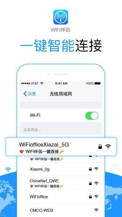 《wifi伴侣苹果版》是一款用于公共WLAN连接和认证的手机软件。用户无需账号密码,能一键接入支持的公共WLAN,如中国移动的CMCC网络,免费畅游网络,且不扣取任何流量与话费,不限时长和流量。