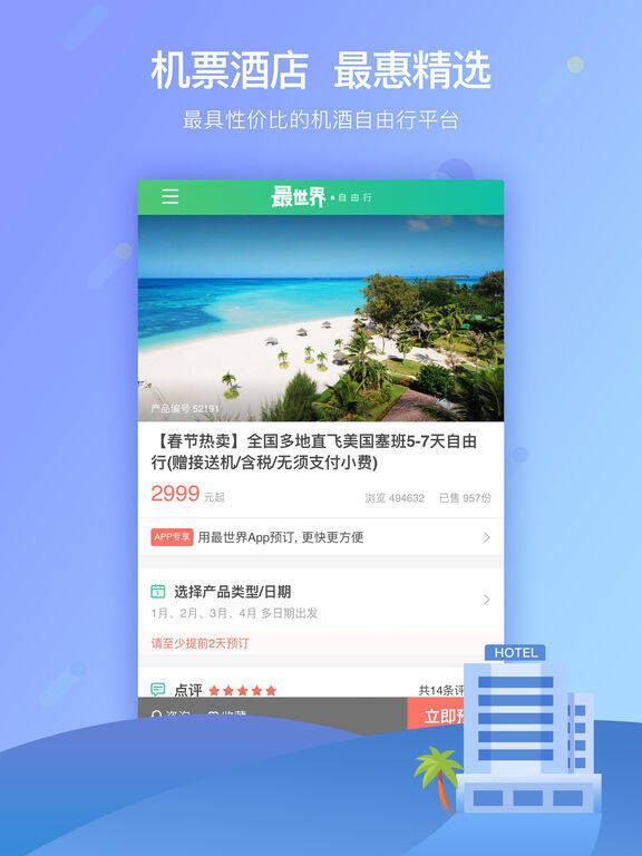 3、可预订国内外热门景点门票和跟团游,价格优惠力度大。