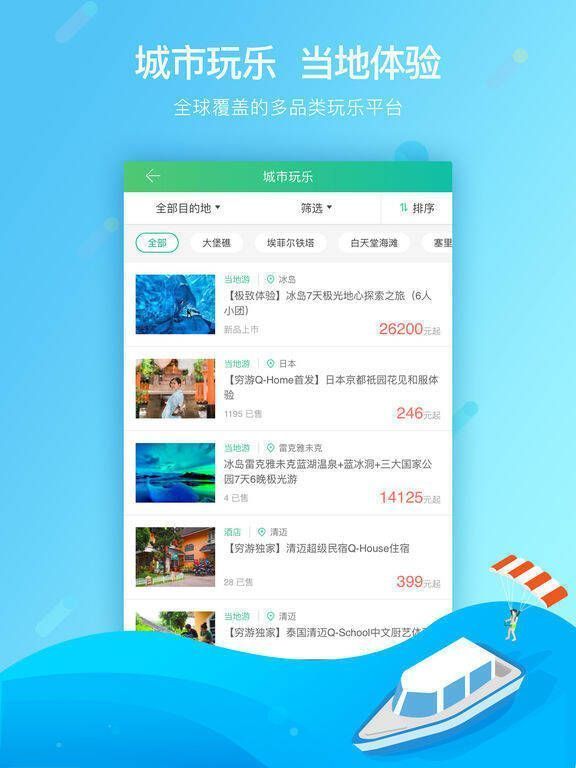 2、能查询预订国内外热门目的地的游玩活动,如一日游、观光游览、海上活动等。