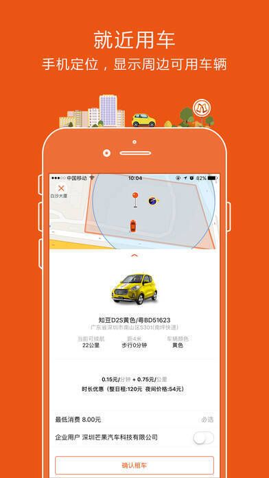 【取车仅需步行5分钟】数百个取车网点,打开APP,就近下单;